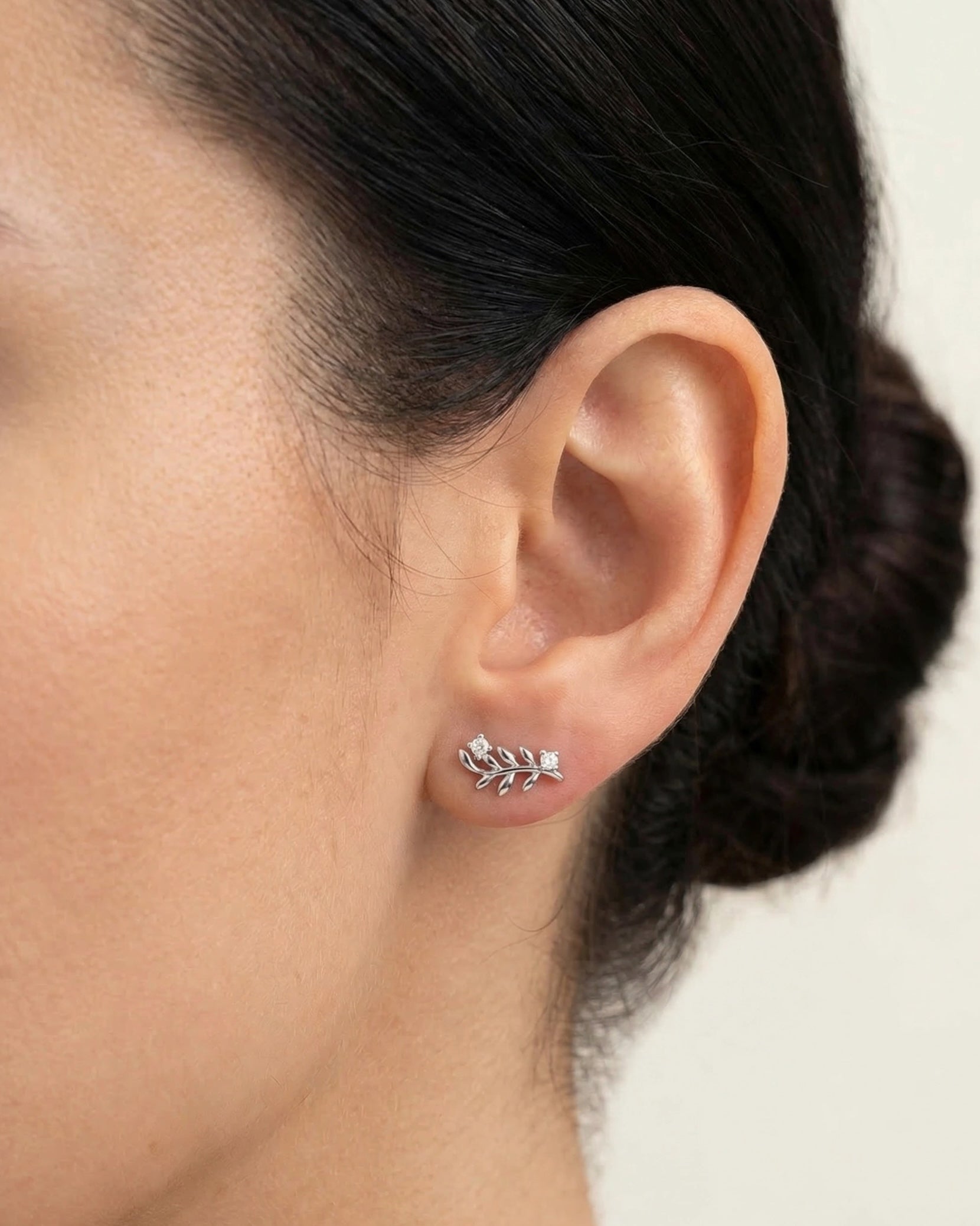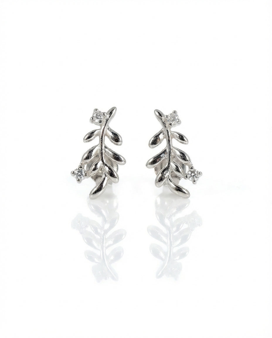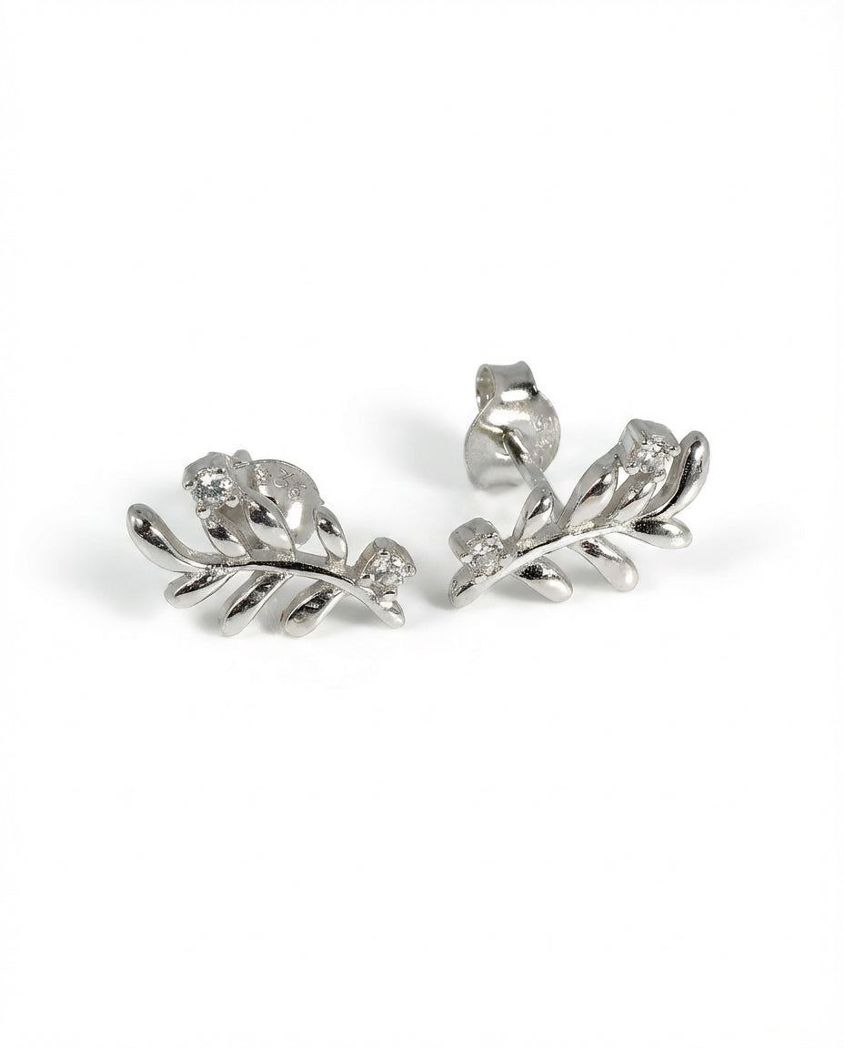 Šie 925 prabos sidabriniai auskarai-vinukai atkartoja grakščią alyvmedžio šakelės formą, simbolizuojančią taiką ir gamtos harmoniją. Kiekviena detalė papuošta smulkiais, spindinčiais cirkonio akmenukais, kurie suteikia papuošalui subtilaus švytėjimo. Tai elegantiškas ir romantiškas aksesuaras, puikiai tinkantis norint suteikti įvaizdžiui natūralaus žavesio.